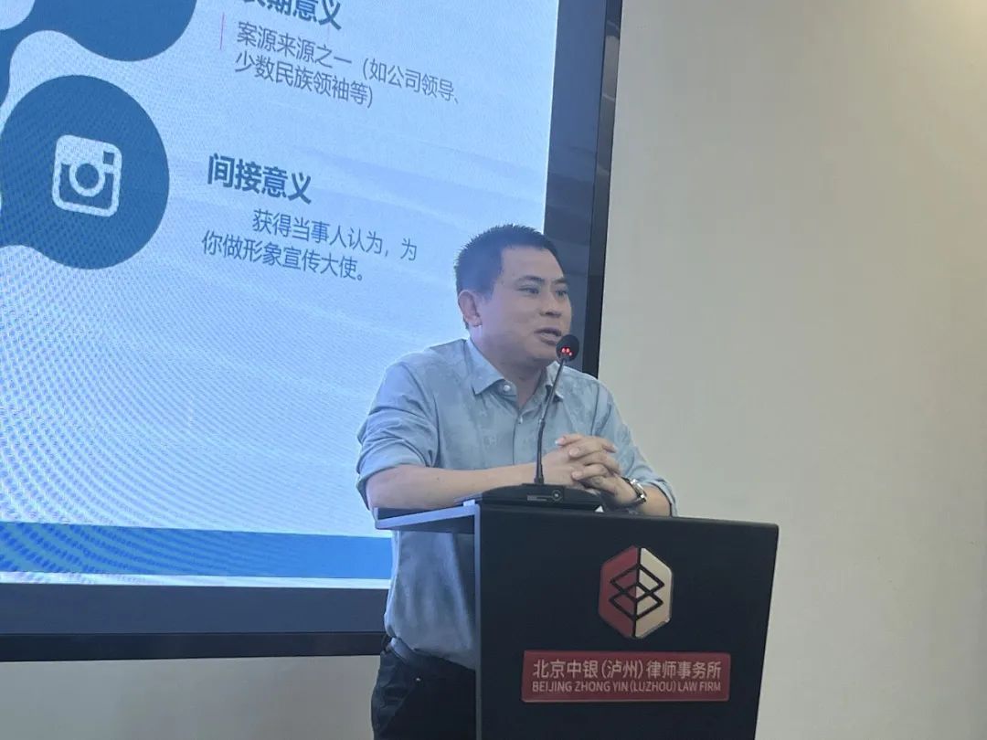 为帮助青年律师掌握核心技能,4月23日,北京中银(泸州)律师事务所“青年律师学院”举办第五期专题活动。本期课程由赵伟律师主讲,通过系统讲解客户接待、证据收集、庭审驾驭及庭后维护等关键执业技能,助力青年律师夯实专业基础。