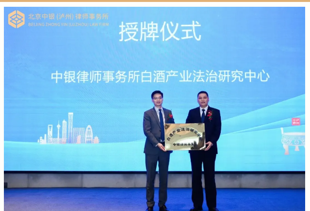 北京中银律师事务所管委会主席刘晓宇为“中银律师事务所白酒产业法治研究中心”授牌。