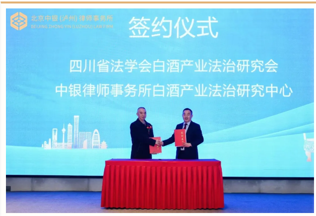 四川省法学会白酒产业法治研究会和中银律师事务所白酒产业法治研究中心签署了关于开展白酒产业法治相关研究合作的协议,此次签约标志着双方合作步入新起点。